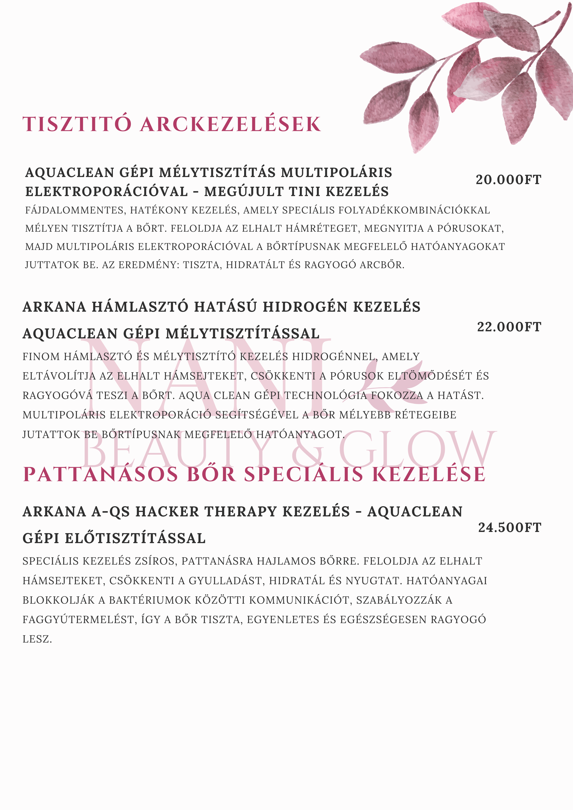 A Nani Beauty & Glow szalonban olyan arckezeléseket kínálok, amelyek nem csak felfrissítik a bőrödet, hanem új életet lehelnek bele.